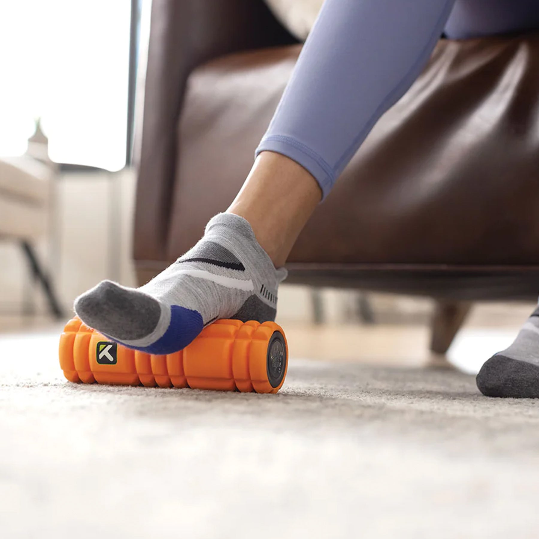 The TriggerPoint NANO Vibe is an ultra-compact 7.5” foam roller with vibration to target muscles in the feet, hands, and forearms. Vibration helps reduce discomfort during foam rolling, while helping to unlock tight muscles for a more effective release. Featuring the patented GRID pattern that simulates a massage therapist’s hands, the unique surface mirrors the pressure of fingertips, fingers, and palm to promote the flow of blood and oxygen for optimal recovery. The soft foam surface delivers gentle compression on tight muscles, knots, and kinks for a targeted massage. The easy-to-clean and sweat-resistant EVA foam surface is ideal for post-workout recovery sessions, while the textured pattern stimulates pre-workout mobility. As a specialty Level 3 foam roller with vibration, the NANO Vibe is ideal for targeted relief. Three vibration settings provide a range of intensity to better customize your massage experience. Cordless and rechargeable for up to 3 hours of power, the NANO Vibe is ideal for on-the-go relief. Measuring 7.5-inches and 2.25 inches in diameter, the NANO Vibe is lightweight and built to fit in most gym bags and backpacks. The roller has a 245-pound weight limit and includes access to free online instructional video library on foam rolling education from the experts at TriggerPoint.
