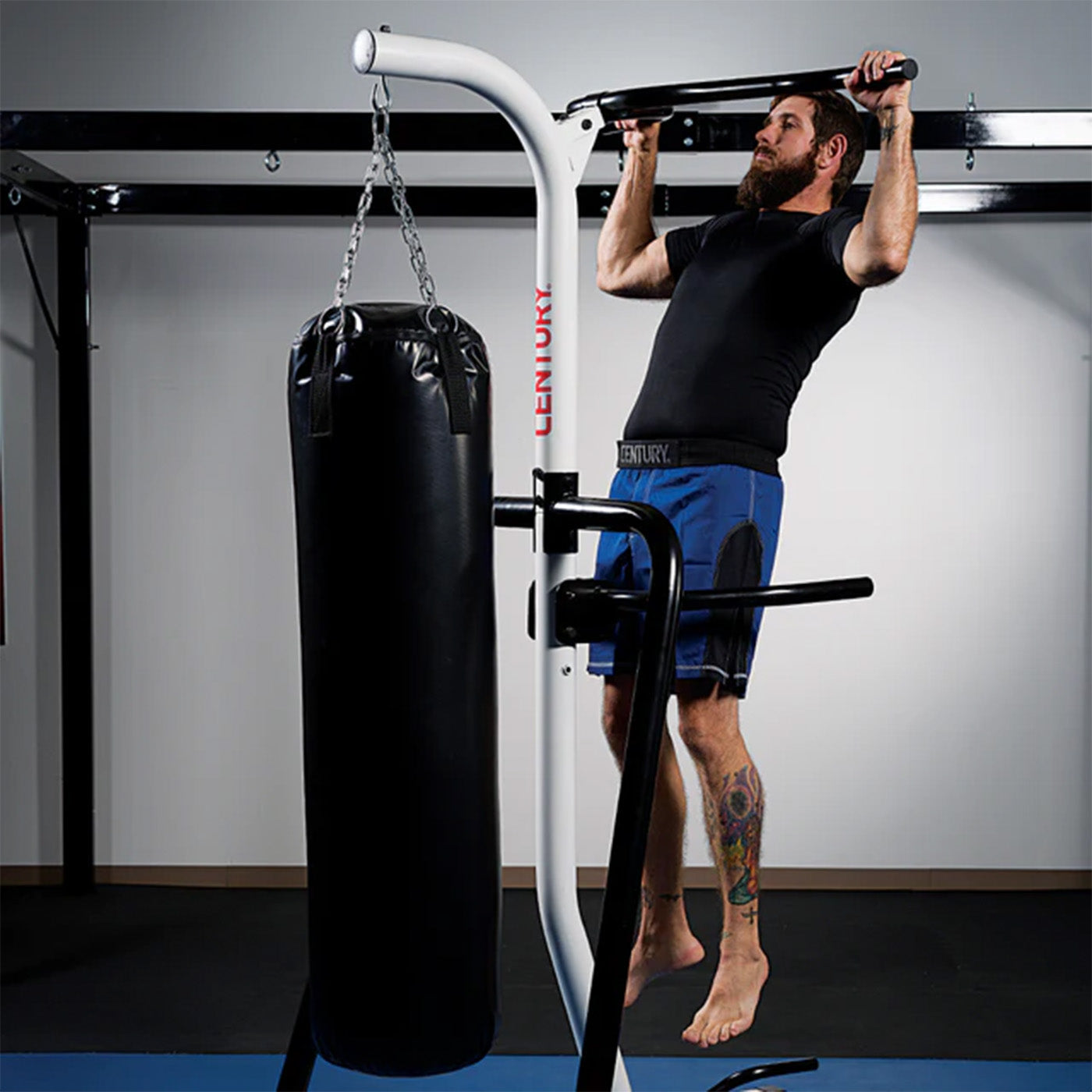 Transform Your Home into a Pro-Level Gym for Martial Arts Practice with the Cenury Fitness Training Station. Capable of supporting a punching bag of 100Lbs in a compact foot print.