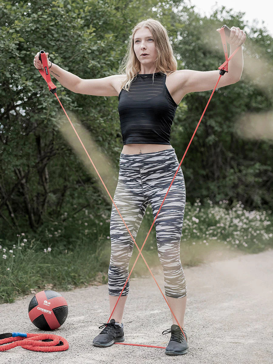 - 5 Resistances: With five resistance options, you can choose the correct resistance for your fitness level or for your desired workout. The COREFX Power Tubes feature a unique handle with colour coded webbing for easy resistance level identification. Ranging from 10 to 50 lbs of resistance, there is a Power Tube for everyone!