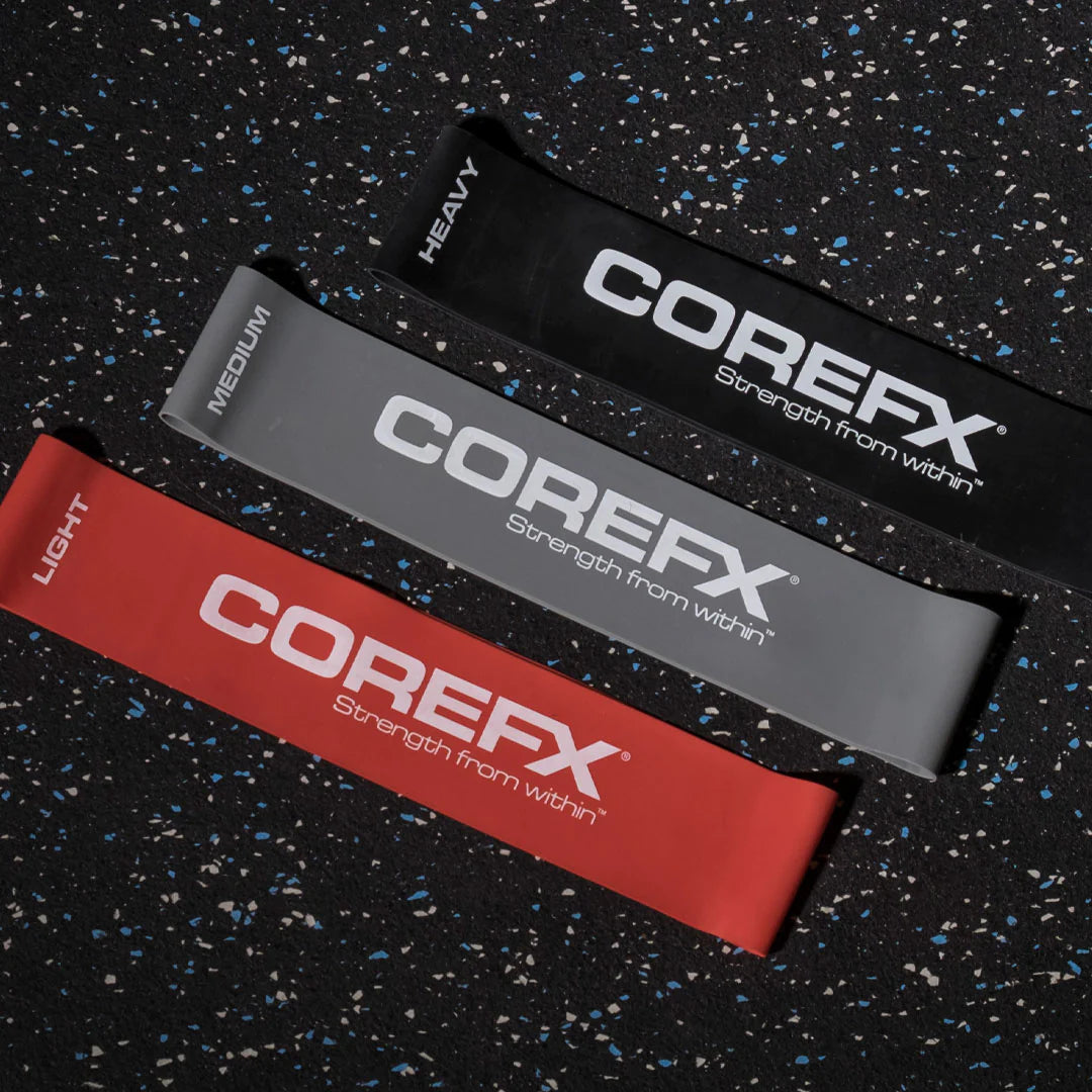 These 10in x 2in COREFX Pro Loops are ideal for strengthening, toning, rehabilitation and stretching. Great for lower body workouts and glute activation for a tighter stronger booty. With four resistances available, The COREFX Pro Loops are great for any fitness level and can be used anywhere. Each loop is made from medical grade latex and has been quality tested and inspected.