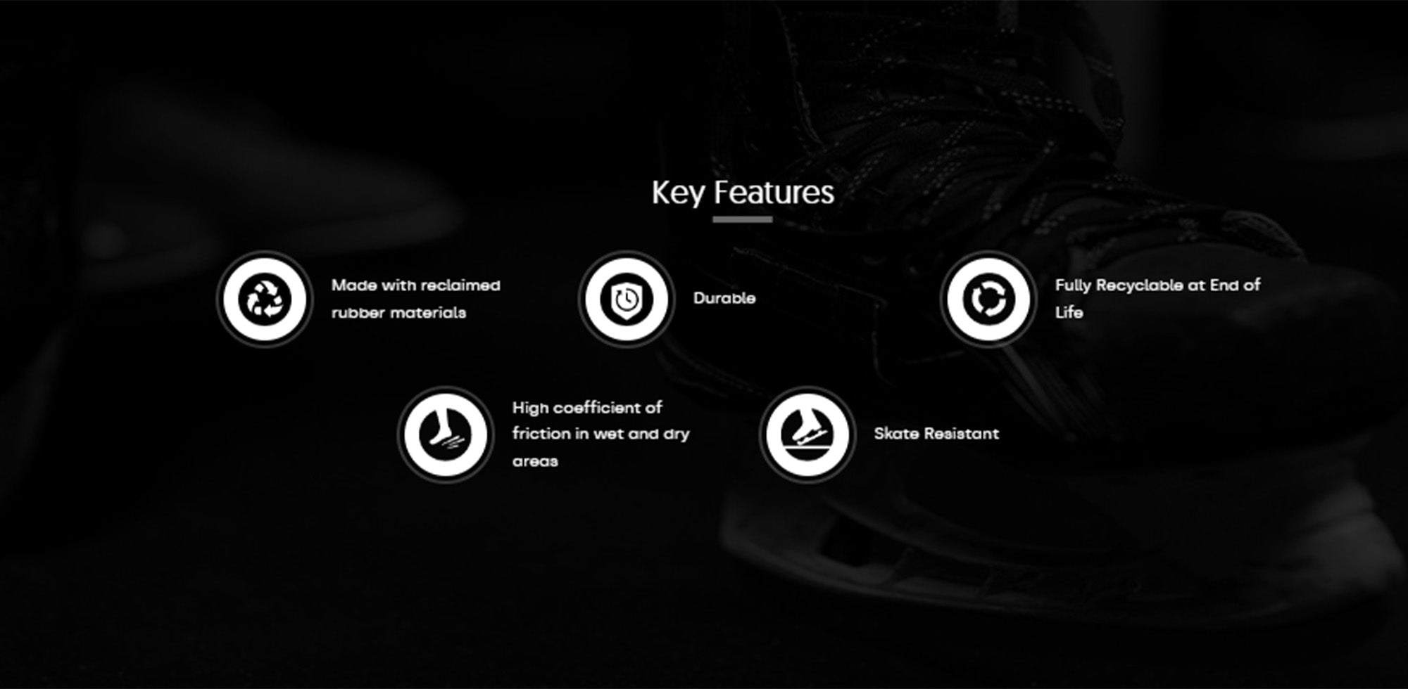 Blade is a solid 9mm vulcanized composition rubber product that is specifically designed for areas where athletes are walking on skates. Whether you need surfacing for right around the rink, the walkways, or the team locker room, Blade is the perfect solution. Blade is formulated to be very dense and durable to withstand skate traffic, and it is also slip resistant whether wet or dry for those walking without skates.