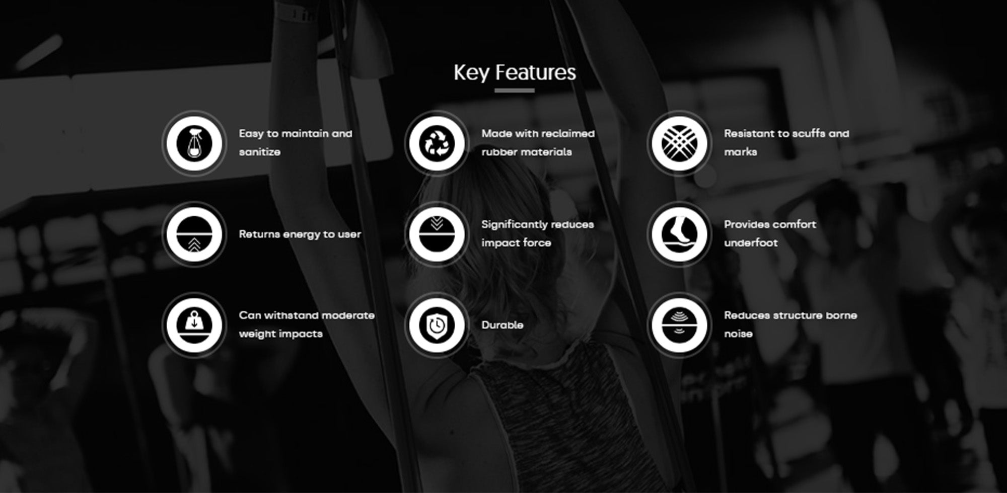 Ideal for functional training and therapy/rehab training spaces, Moxie Motivate Plus provides ultimate comfort underfoot and under body contact points. This surface provides an ideal balance of force reduction and energy restitution that reduces significant stress and strain on lower extremities while still providing ergonomic support and energy back to the user.