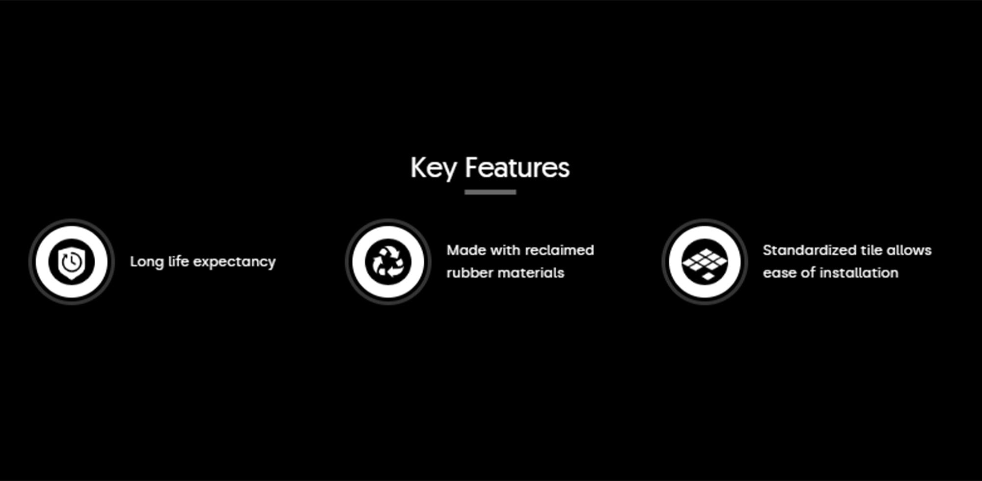 Ecore's PlayGuard Tiles are manufactured with proprietary processes that mold a dense 2.5mm vulcanized composition rubber (VCR) and EPDM surface layer to a footed VCR base.