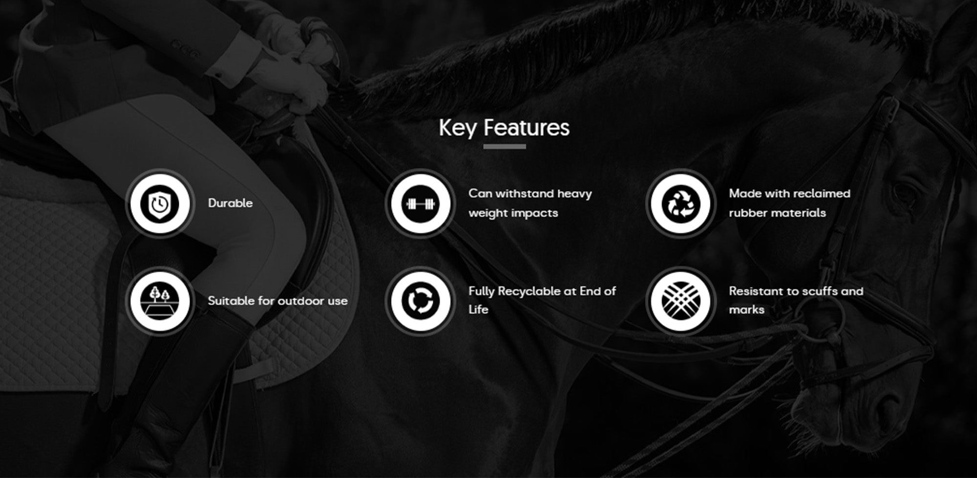Built to handle repetitive impact, PaveSafe Big E Tiles are ideal for extreme strength training and equine applications.