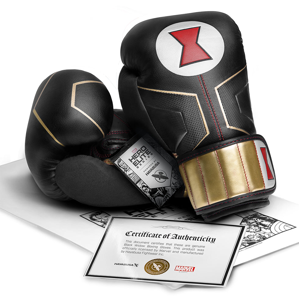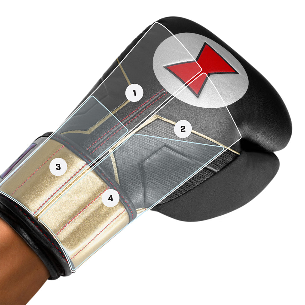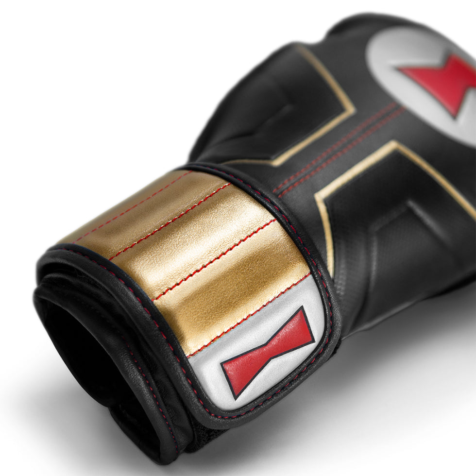 Black Widow is a deadly assassin that can stand shoulder to shoulder with super soldiers. This martial arts expert used her ruthless skills as a secret agent to become one of the Avengers most valuable assets. Inspired by Black Widow’s tactical uniform, our boxing gloves embody her stealthy look with her signature widow’s bite bracelets and hourglass emblem. They’ll never see you coming.