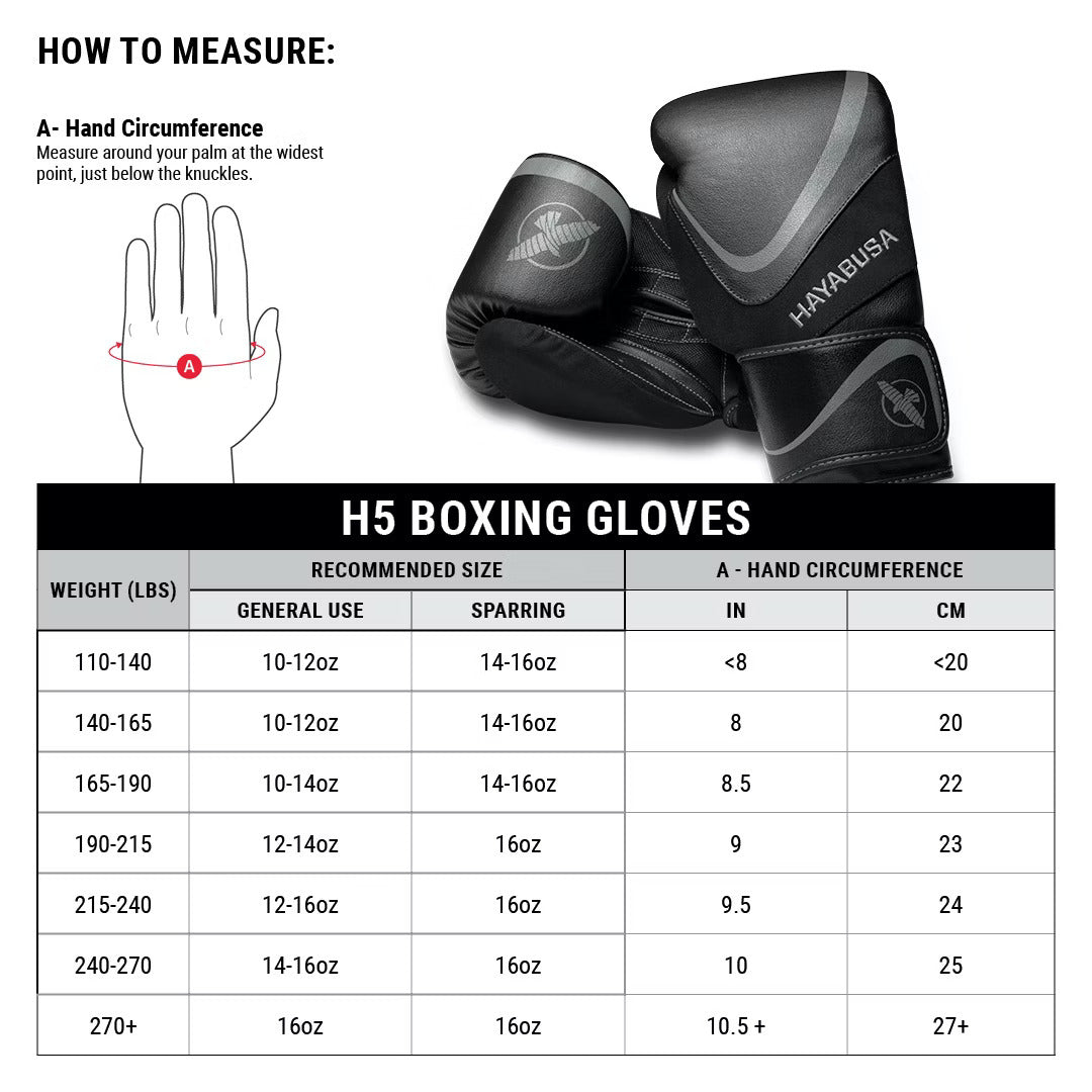 Hayabusa H5 Boxing Gloves were created to combine adjustability, comfort, and protection. The stretch wrist strap ensures a secure fit while the ergonomic design and multi layered construction protects your hands and wrists. These gloves provide excellent performance punch after punch.