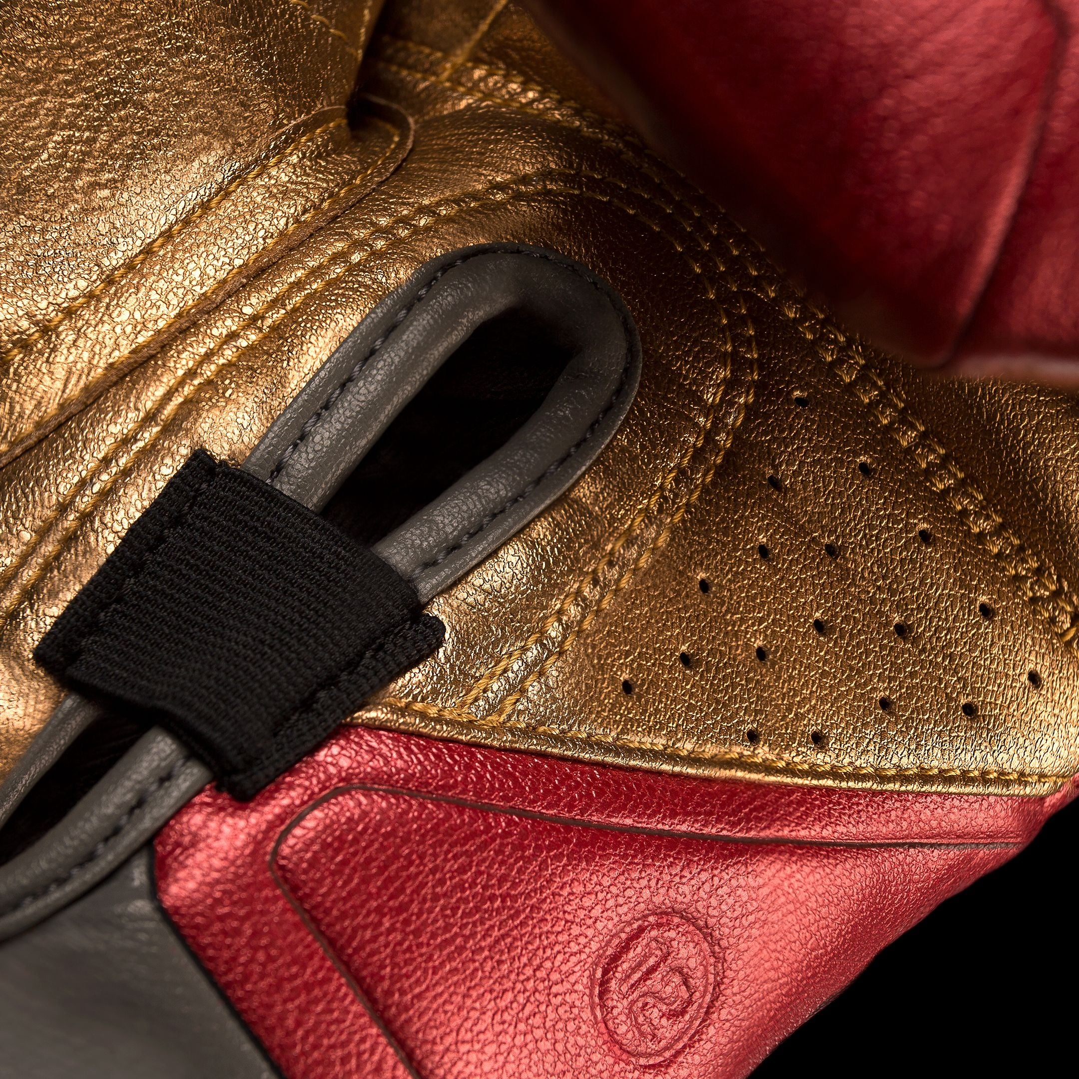 What makes Tony Stark a hero is his dedication, passion, and his genius intellect. Taking inspiration from his classic Iron Man suit, these gloves were made to reflect its mechanical components and iconic design.