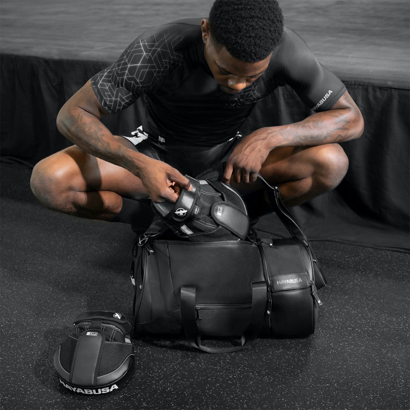 The Hayabusa Elite Duffle Bag is engineered specifically for boxers with a custom-made pocket built to house your gloves. Its spacious main compartment makes storing all of your equipment easy, while the various pouches and pockets are ideal for your hand wraps, mouthguard, and valuables. The hard-wearing, water-resistant exterior features heavy-duty nylon straps, premium zipper pulls, and a removable padded shoulder strap. Turn heads everywhere you go with the perfect boxing gym bag that’s made to last a lifetime.
