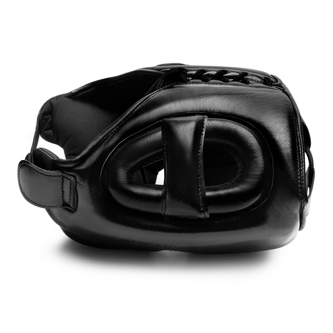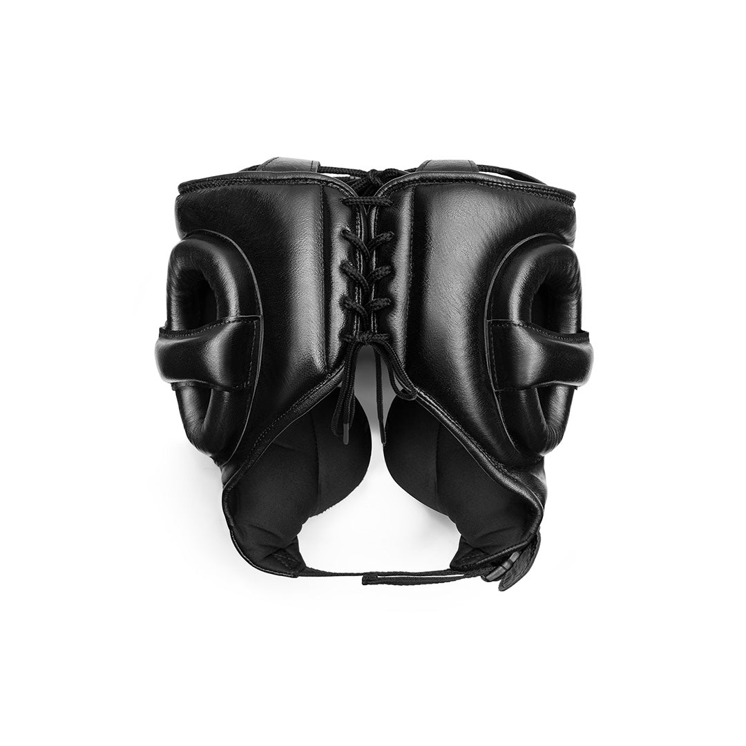 Developed alongside first-class boxers, the Pro Boxing Headgear perfects a traditional design that boxing purists love. Crafted entirely of supple top-grain cowhide leather, this headgear strikes a balance between extraordinary facial protection and comfort, without sacrificing a wide field of vision. Complete with traditional laced closure on the top and back for a secure custom fit.
