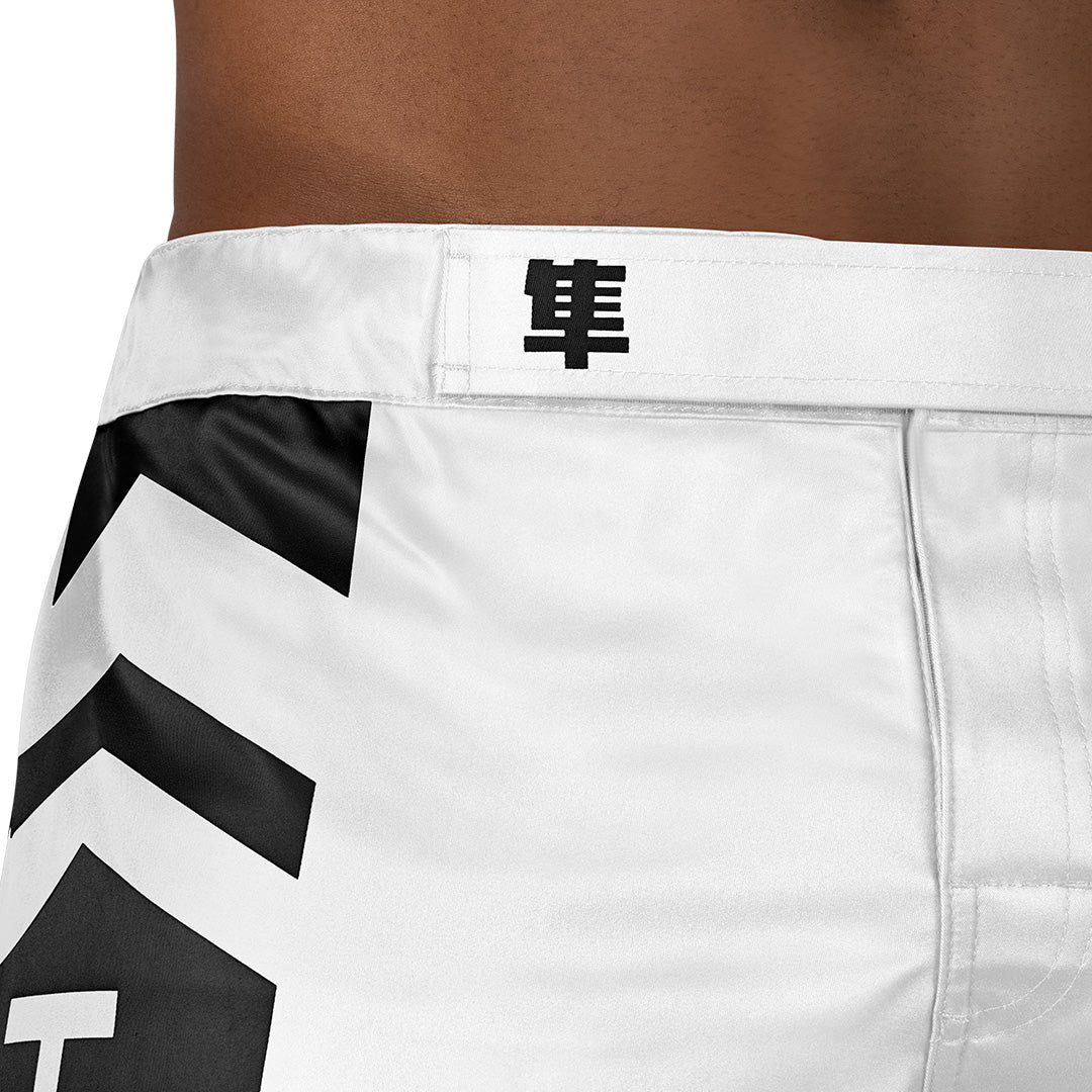 Extended, pro fighter side slits are the pinnacle feature of the Icon Fight Shorts. The longer length delivers an expanded range of motion for the highest kicks and completely unrestricted flow for grappling.