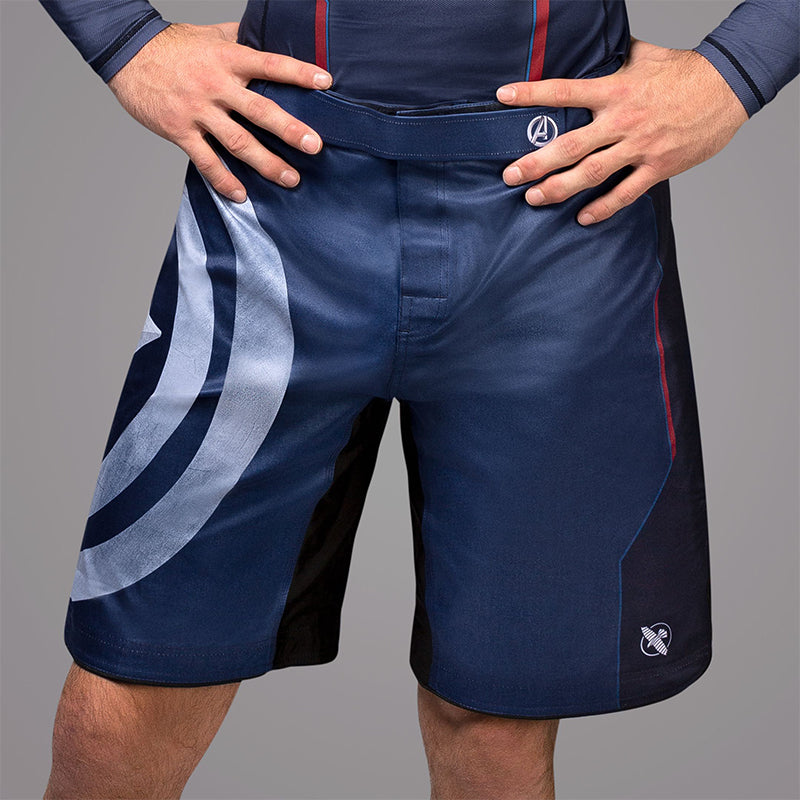 The Captain America Fight Shorts were built to become your ultimate weapon for striking, grappling, and everything in between. Comfortable from the moment you put them on, these fight shorts provide a secure fit that’s locked in place by a silicone waistband. Designed to reflect Cap's patriotic armor and iconic vibranium shield. Its durable materials, reinforced stitching, and stretch panels make these incredible performance shorts for all areas of training.