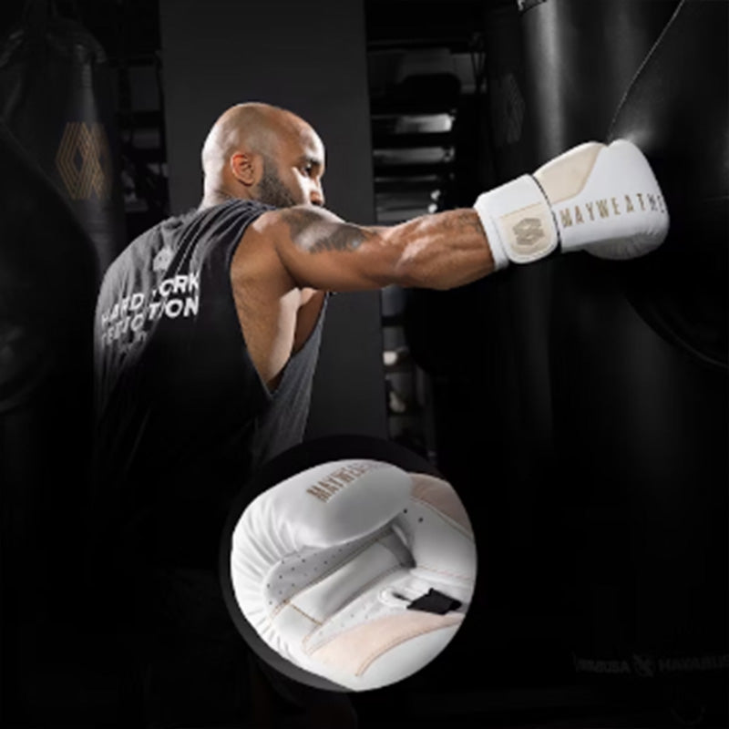 Unleash your full potential with Mayweather Champ Boxing Gloves, built for superior performance and protection. Featuring an advanced wrist support system, this glove combines a triple-splint design to align and stabilize your wrists with two interlocking straps that offer a precise, secure fit. If you prefer a traditional fit, you can remove the inner strap with Hayabusa’s one-of-a-kind customization. Once on, these gloves feel like a natural extension of your hand, priming your fist in the absolute perfect punch positioning. Experience the culmination of over a decade of dedicated boxing research, studies, and testing.