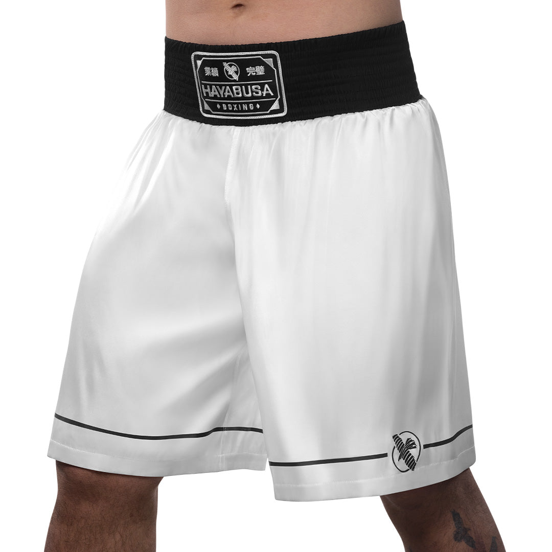 Step into the ring with confidence. Hayabusa Pro Boxing Shorts are ultra lightweight, with silky smooth fabric that keeps you cool and comfortable. Equipped with a traditional boxing waistband, these spacious shorts flow with your footwork without shifting or riding up. Its sleek minimalistic design features a custom Hayabusa patch front and center with fully embroidered detailing.