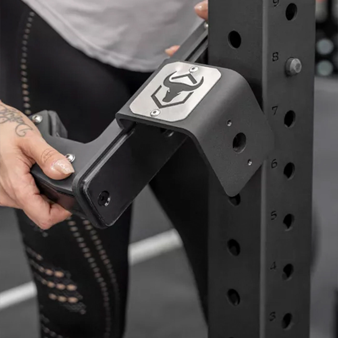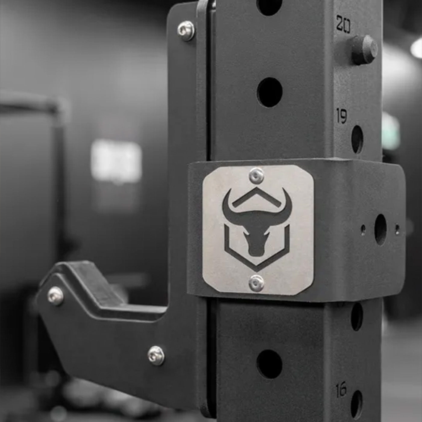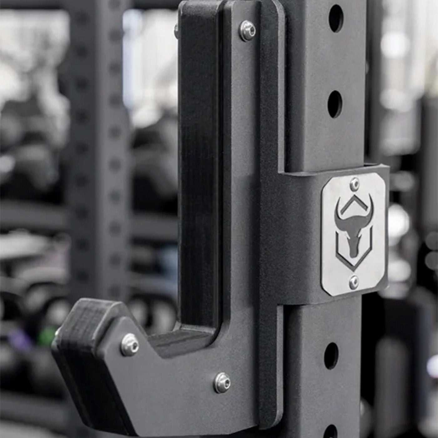 Iron Bulls sandwich-type competition J-Cups protect your rack and barbell from getting damaged when racking your bar after a heavy set, thanks to the oversized UHMW plastic core.