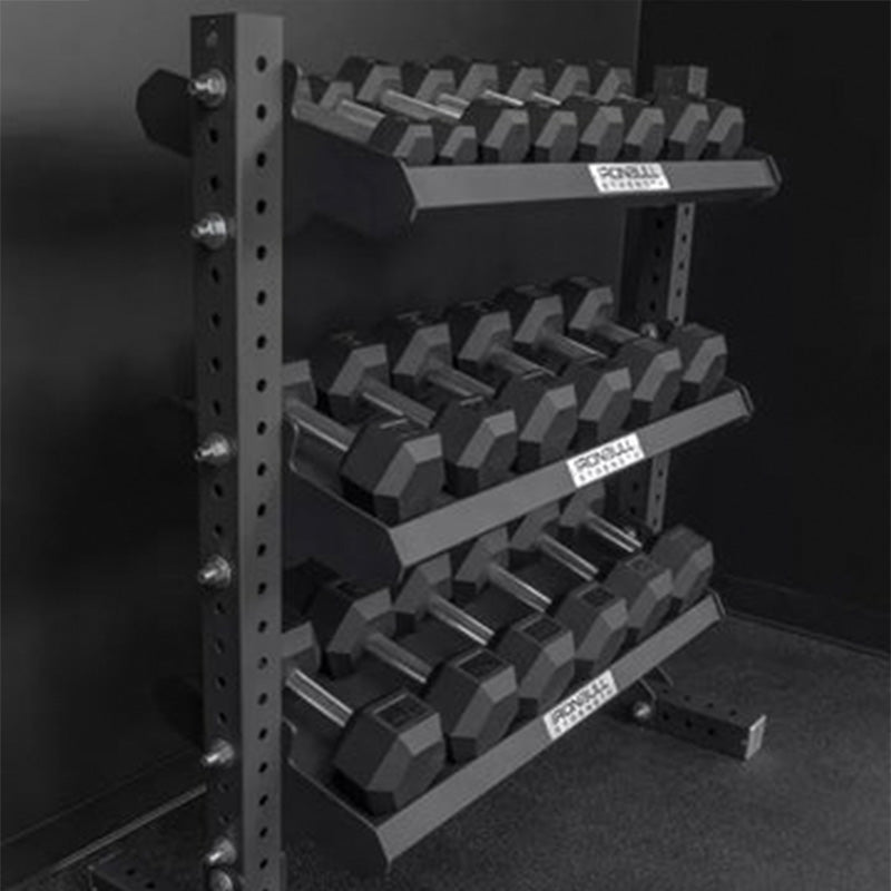 Keep your workout area organized, clean, and safe with this 42" 3-Tier Hex Dumbbell Rack.