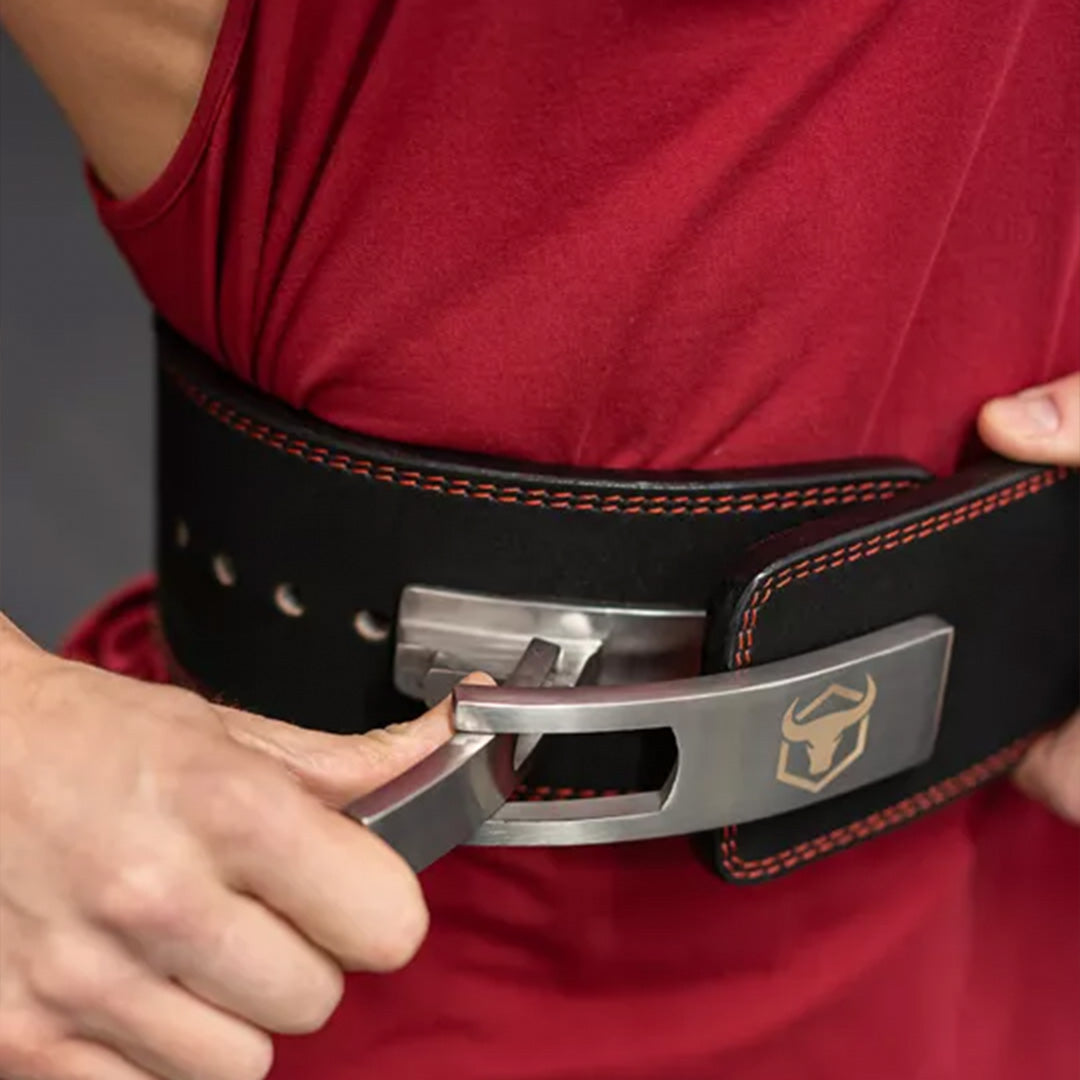 The pro 4" 10mm lever belt is the perfect accessory for weightlifters seeking superior back support and core stability during heavy lifting sessions.