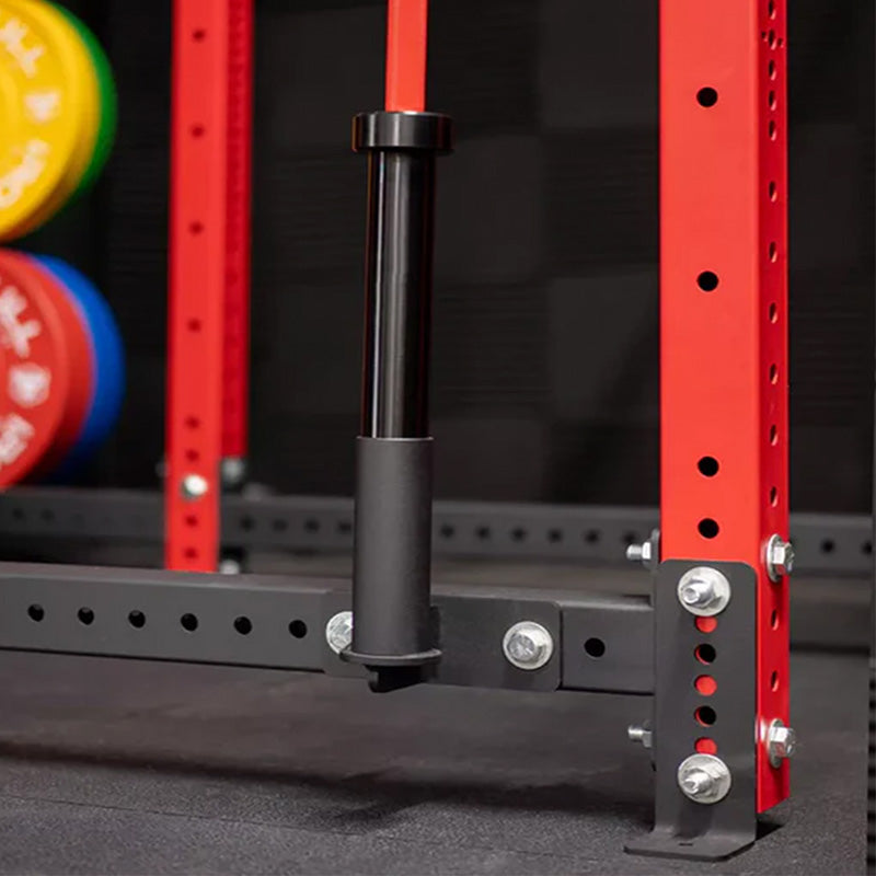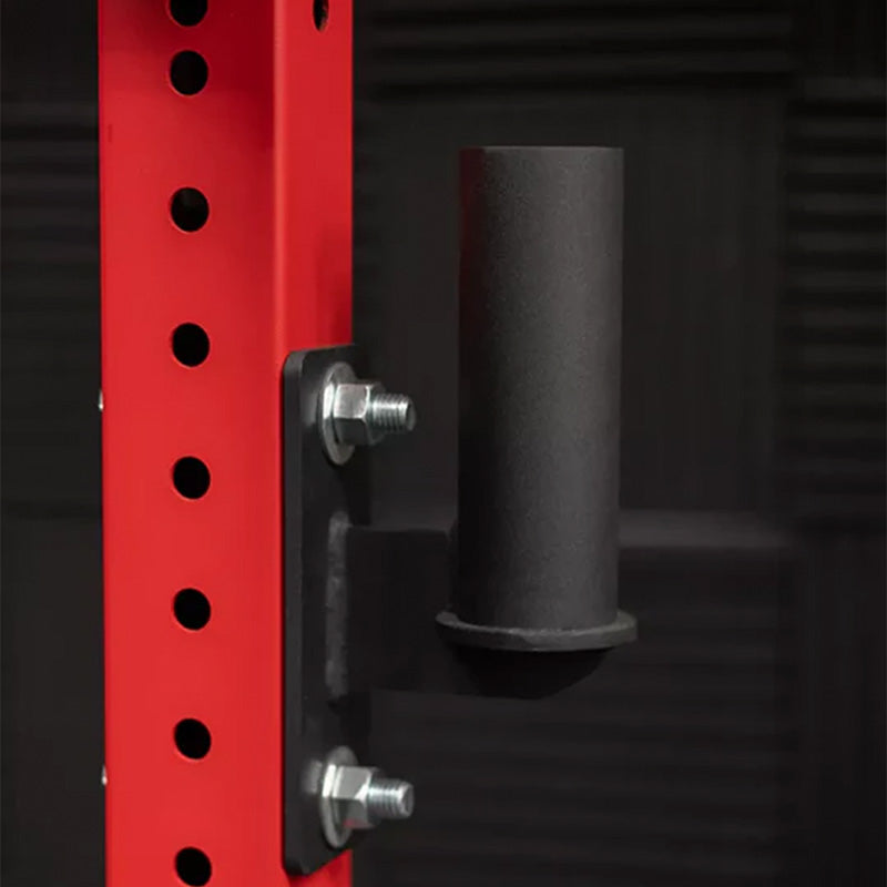 This sturdy piece of equipment can attach anywhere on your rack, on vertical or horizontal crossmembers, and keep your barbell easily accessible.