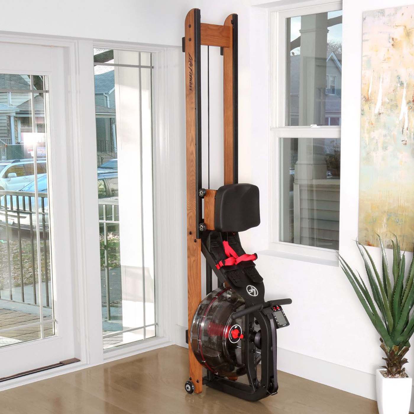 COMPACT AND EASY TO MOVE Easy to move and has a small footprint to fit in any space. The rower is less than 7-feet (213 cm) tall when stored upright.