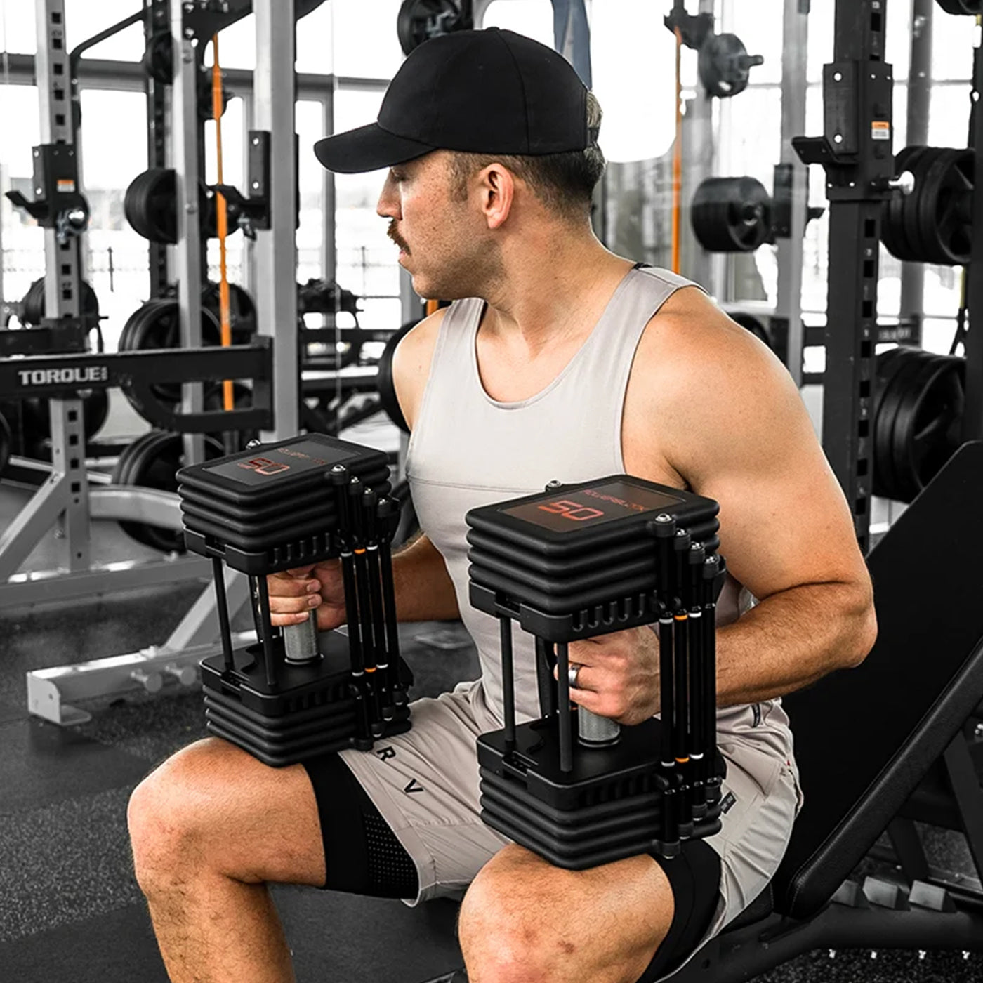 It all started with the simple observation that dumbbells were cluttering gym floors everywhere and that a full set of traditional dumbbells took up too much space at home. Inventor and founder Carl Towley put together the concepts of a nested weight stack with a handle secured by a U-shaped pin that became the first ever Adjustable Dumbbell.