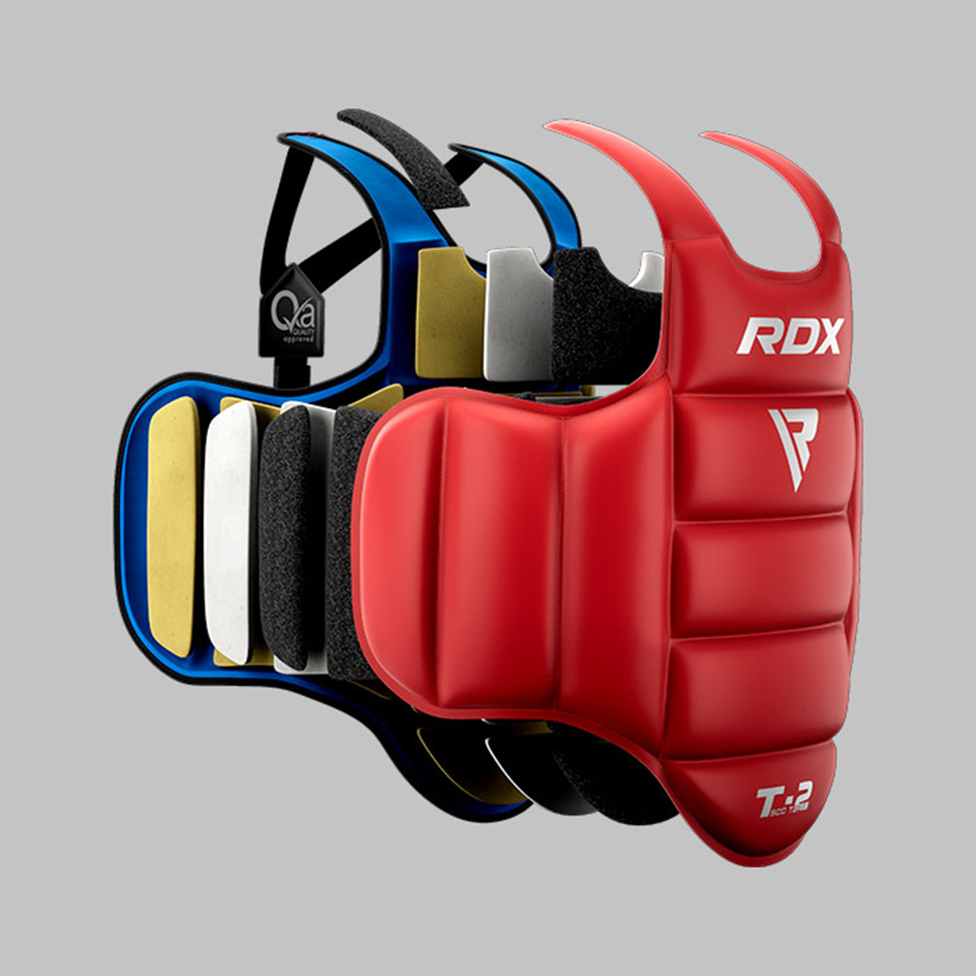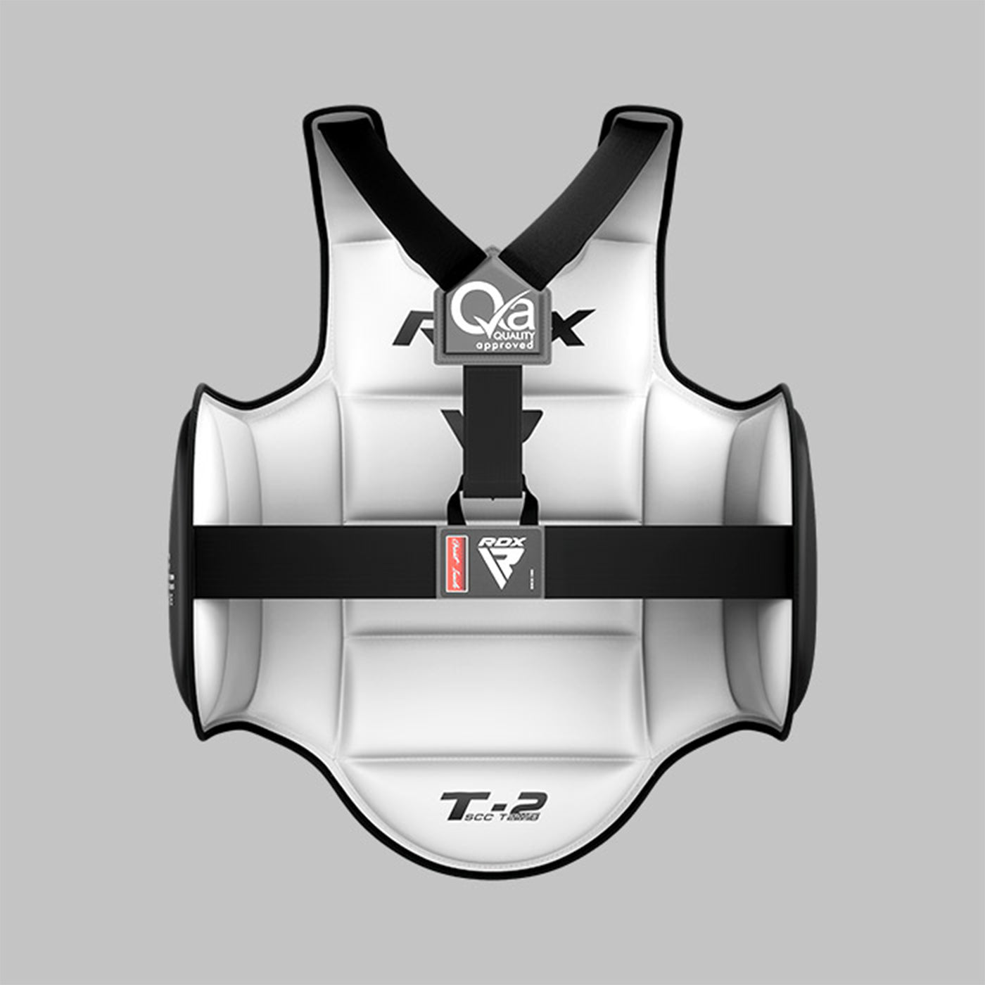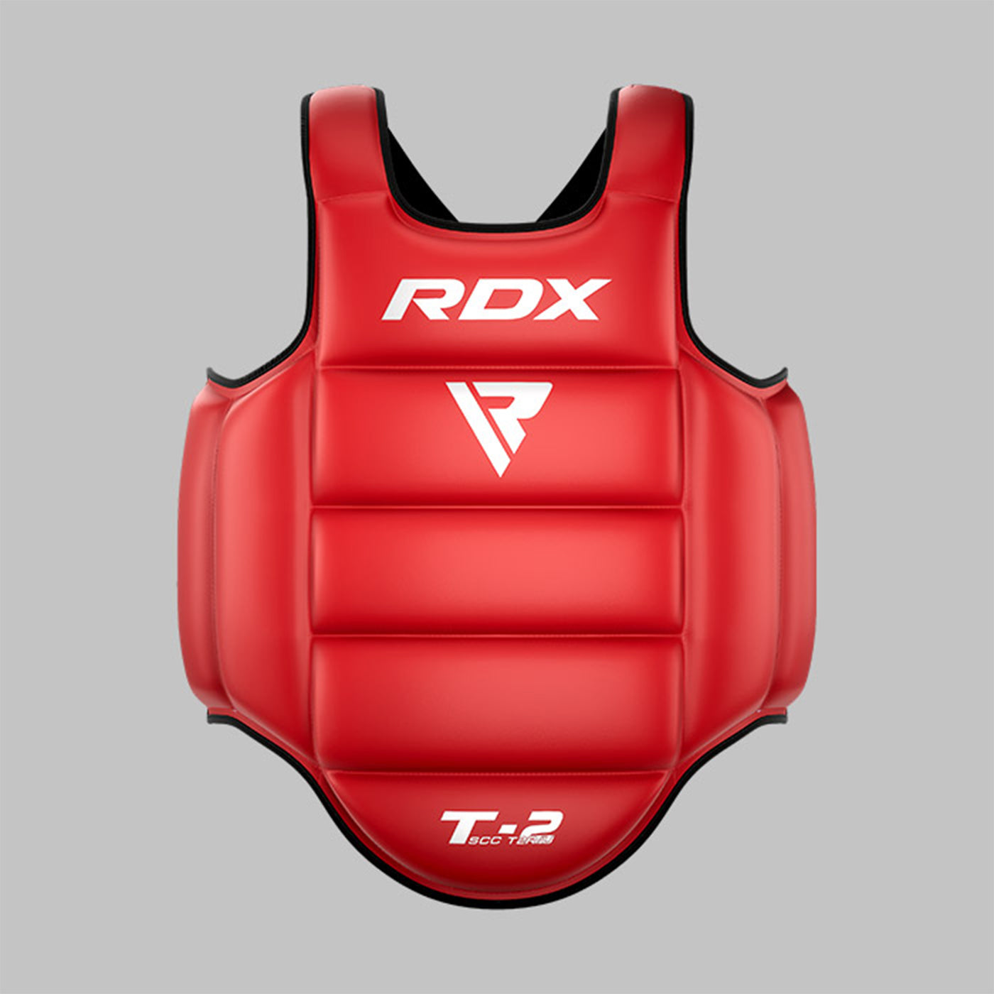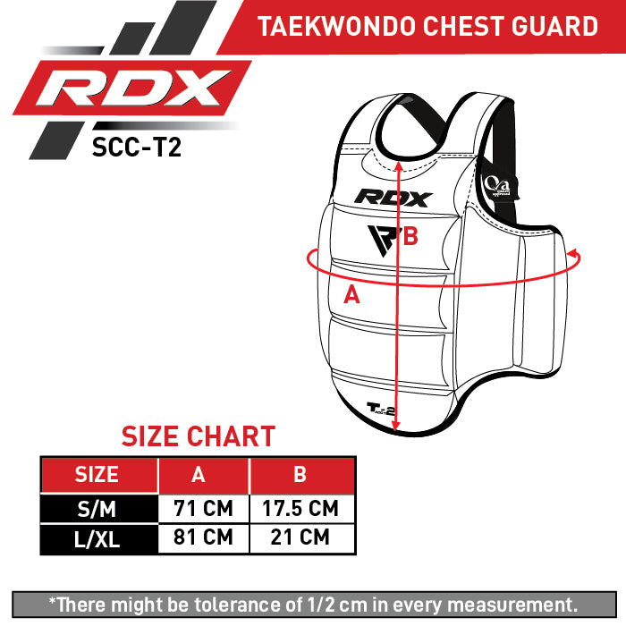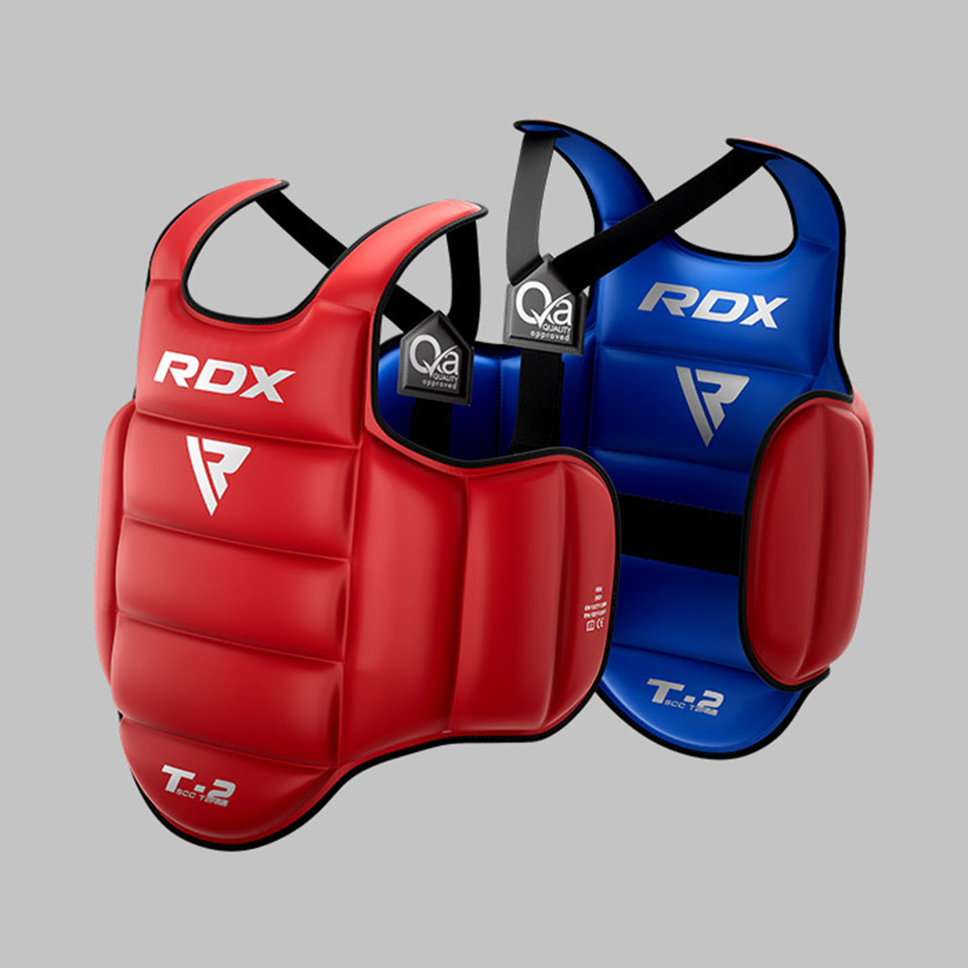 Are you a boxer or MMA fighter looking for ultimate protection when sparring in the ring? Look no further than the RDX T2 CE Certified Reversible Karate and TKD Chest Guard! This chest guard protects your body from potential blows and kicks during intense bouts and is also designed to be lightweight and comfortable. Whether you're just getting started or have been a professional athlete for years, proper protection should be at the top of any practitioner's list of priorities – don't leave yourself exposed to avoidable injury. With comfort and protective features built right into this chest guard, you can safely train like never before with unmatched security and mobility. CE certified by SATRA Technology.
