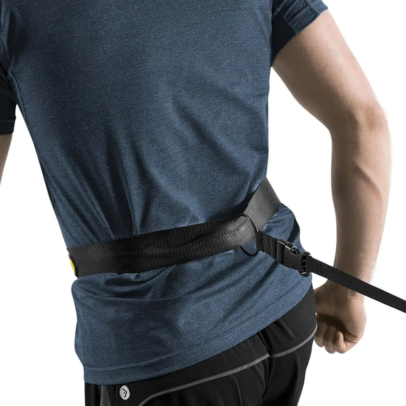 The 360-degree rotation belt allows you to train in any direction. When positioned on the right or left hip, it allows you to get off the line laterally. When positioned at the center of your back, it allows for a linear or parallel start. Because of the free-motion ring, it can freely slide around your waist while mid-stride to change directions from forward to backward or backward to forward.