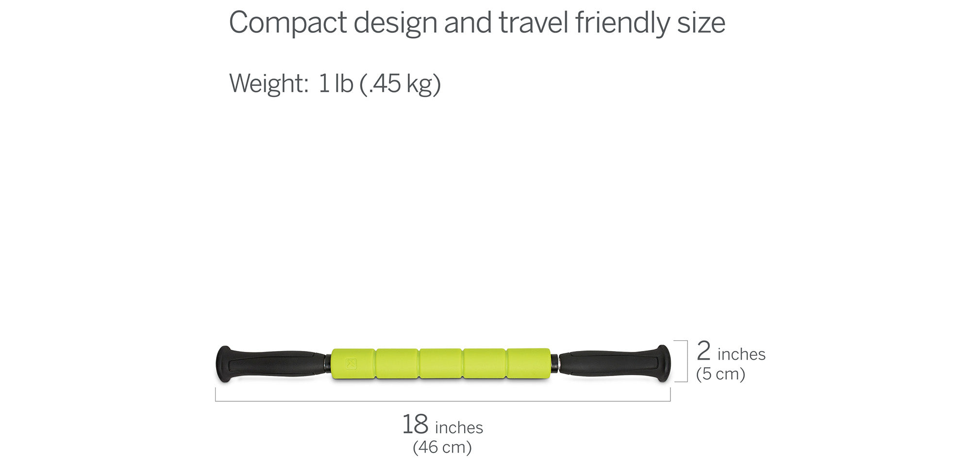 Engineered for user-controlled pressure, this slim massage stick helps reduce muscle soreness and improve circulation, so you can quickly recover after a workout or injury. The ergonomic handles provide extra comfort while rolling, and make it easy to get to those hard-to-reach places. Give your body a much-needed massage and allow quick muscle recovery for post-workout bliss.