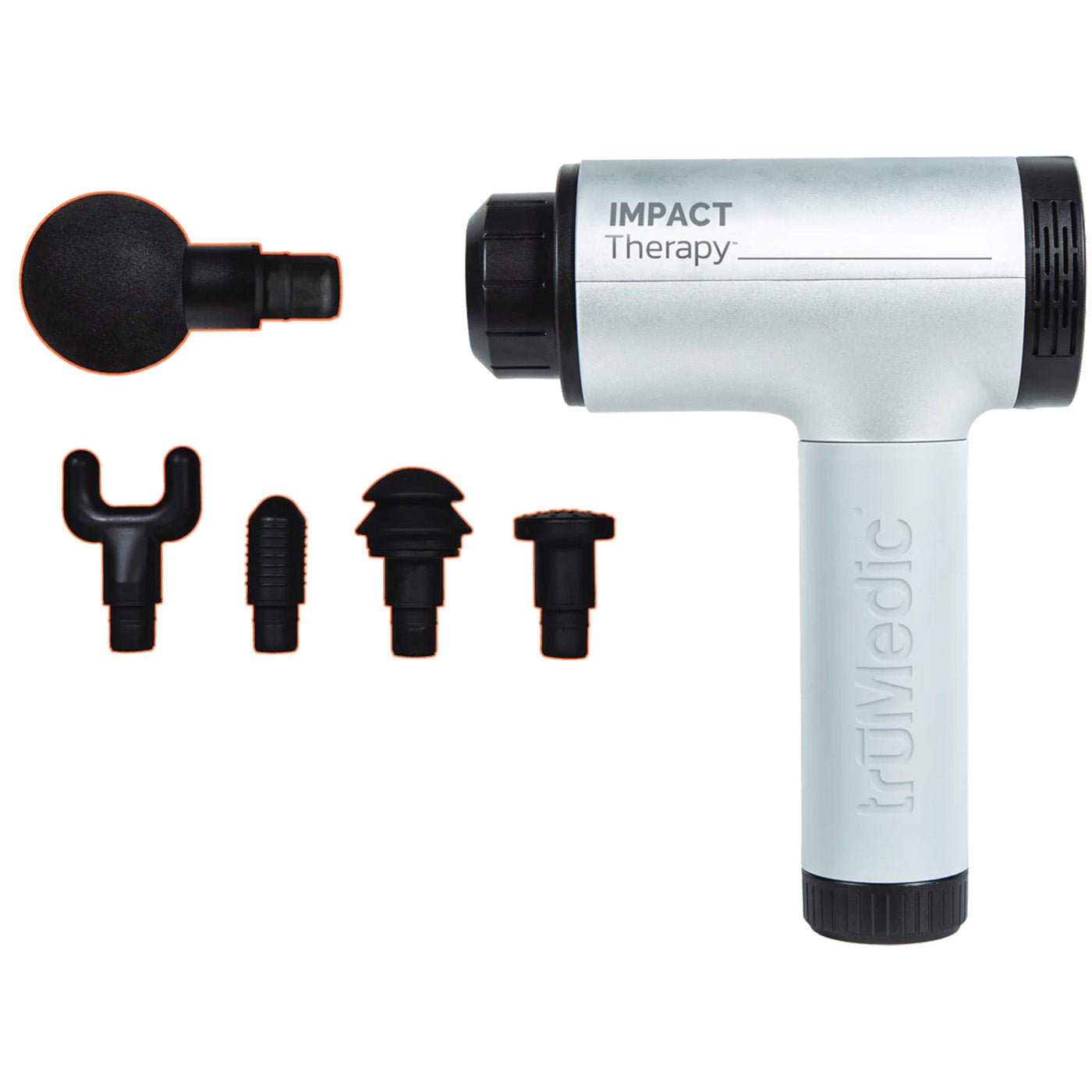 - An included carrying case for your truRelief™ IMPACT Therapy™ Device MAX and 5 interchangeable Impact Therapy™ heads