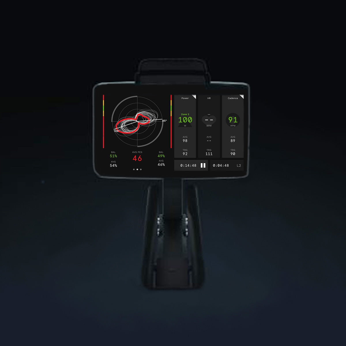Pedaling Effectiveness Score is a unique technique analysis tool. Building on the industry defining Polar View, PES provides riders with a color coded display and numerical score. Previously only available via smartphone and tablet on the Hub app, you can now find it right in the touchscreen of the Wattbike Nucleus.