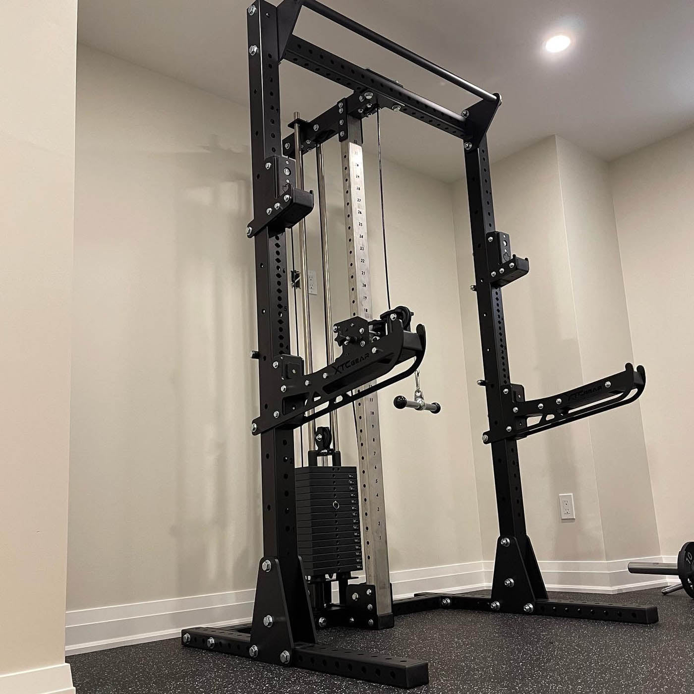 This is the strongest / smallest profile rack with full functionality that I have ever seen. XTC cut mine to 84" so I could use it in the basement with enough ceiling clearance to do pull ups. I love using this. It's pro level all the way. Made in Canada and SOLID. 3x3 uprights are seriously beefy. No wiggle, no movement at all. Just solid, load bearing steel. I have the XTC rotational trainer bolted on to it too - the whole setup is beyond expectation. Amazing job. Would 100% recommend.