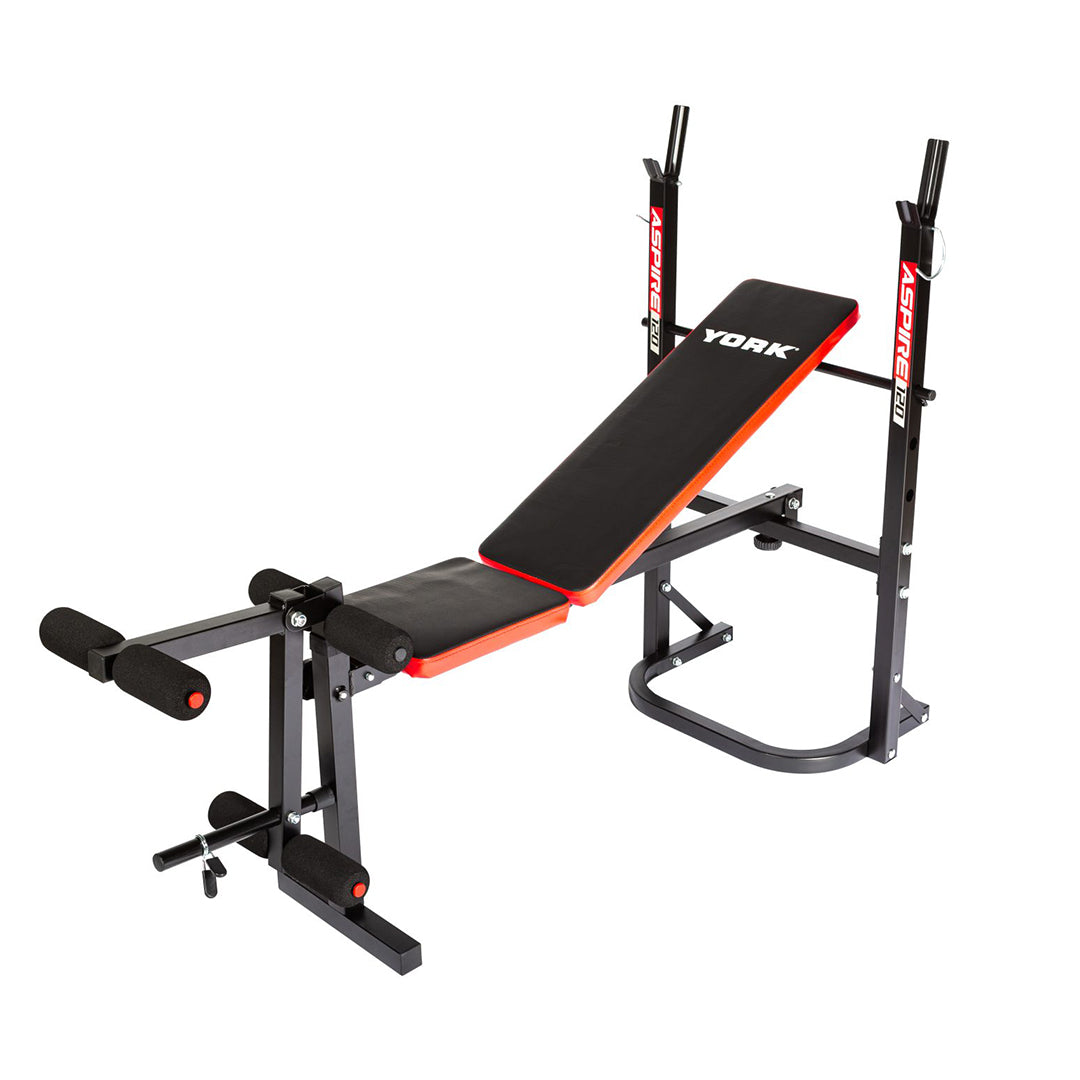 The YORK Aspire 120 Flat to Incline/Folding Bench with Leg Curl is designed for a variety of barbell and dumbbell exercises. With a 23-inch-wide barbell rack, padded leg curl system, and 4 positions for the back pad, this bench is well rounded for your workout routines. It can also be folded for easy storage.