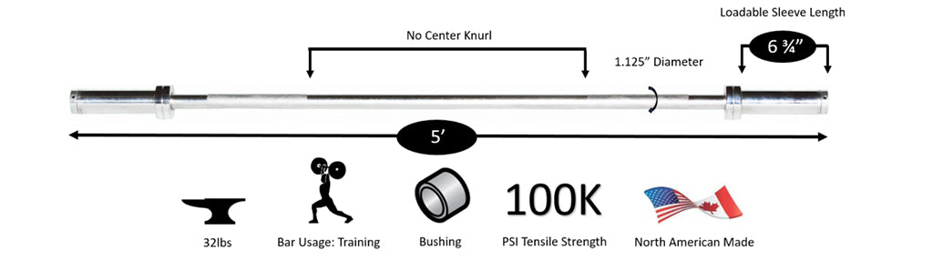 It is less flexible, more rigid, and excellent for use when performing static, highly controlled, slow movements such as the squat, chest press, and deadlift. It is also an excellent weight bar for Olympic lift training. The sleeve is secured on the bar using a bar end nut and spring pin. Sleeves are machined to a precise 1.975” diameter to accommodate 2” Olympic Plates.