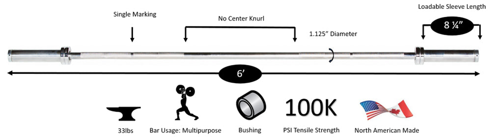 Crunched for lifting space, but want to train the same way you do in the gym or use a standardized power rack or bench press? The International 6ft Barbell is a compact take on traditional 7ft Barbells. With the same collar-to-collar length as a traditional barbell (52 inch) the International 6ft bars fit on all standard power racks and and squat stands. Train hard at home or in tight facility space with this 6ft bar in Chrome.