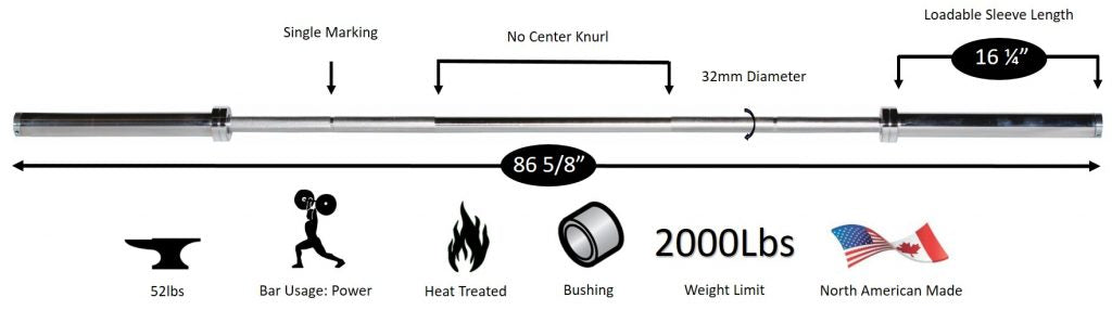 It is less flexible, more rigid, and excellent for use when performing static, highly controlled, slow movements such as the squat, chest press, and deadlift. It is also an excellent weight bar for Olympic lift training. The sleeve is secured on the bar using a bar end nut and spring pin. Sleeves are machined to a precise 1.975” diameter to accommodate 2” Olympic Plates.