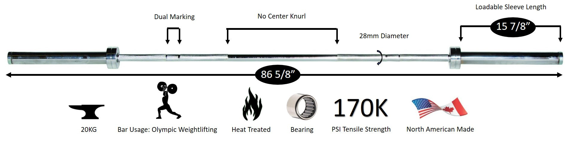 The Men’s North American Chrome Olympic Training Weight Bar is constructed to hold up to the harsh demands of CrossFit training and heavy Olympic bar training in commercial gyms. Order your York® International Needle Bearing Olympic Bar today!